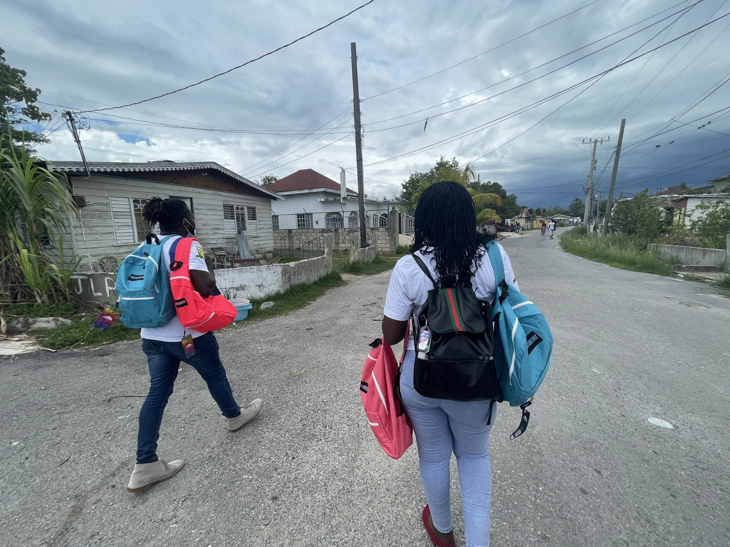 Back-to-school backpack distribution in russia community, Savanna-la-Mar